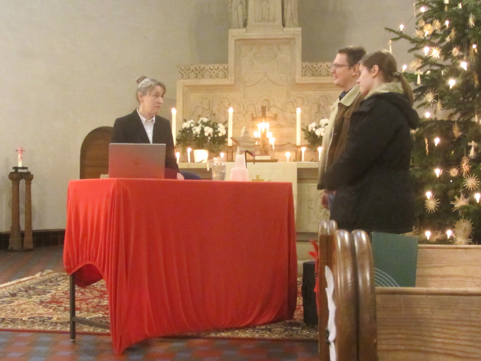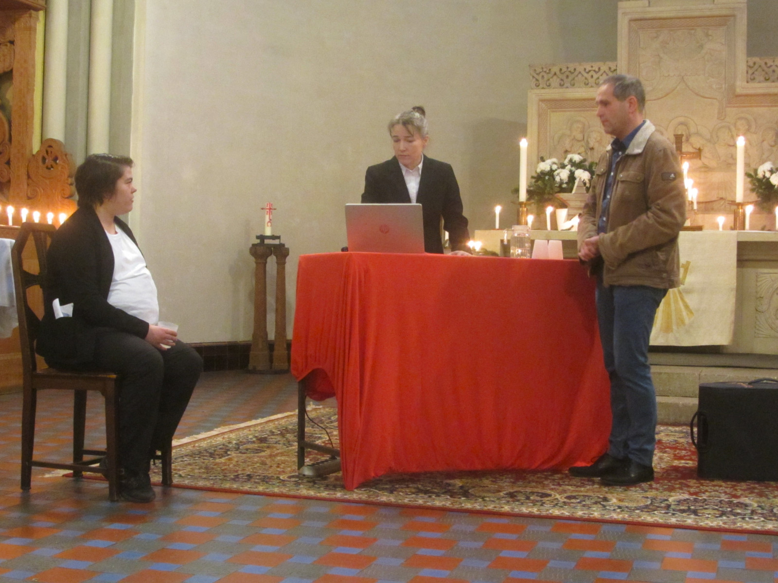 Viele der Besucher des Theaters kehrten auch wieder zurück in den Gemeindesaal zum Abendessen und wieder mussten an den Tischen noch Stühle hinzugestellt werden. Bei den Gesprächen stellte man fest, dass Besucher z.B. aus Möckern und aus Grünau kamen. Während der Essenseinnahme und danach wurde noch eine Lichtbilderzusammenstellung von Lothar Kurth über die Taborkirche, das Gemeindeleben und den Ortsteil als „Endlosschleife“ gezeigt.