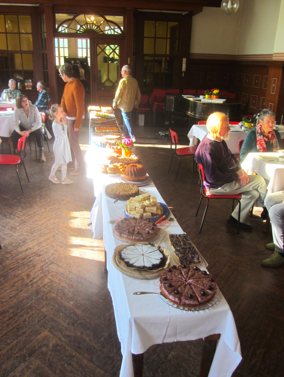 Um 15 Uhr hieß Pfarrer Dr. Sebastian Ziera die Besucher aus nah und fern im Gemeindesaal offiziell zum 120. Tabor-Kirchweihfest herzlich willkommen und nach einem kurzen musikalischen Intermezzo eröffnete er das äußerst üppig ausgestattete Kuchenbuffet zum gemeinsamen Kaffeetrinken und zum Plauschen miteinander an den Tischen. Anschließend stellte Stefan Thomm (Thomm TV GmbH) den extra für das Jubiläum gedrehten Film vor, der rauschenden Applaus erhielt. Und viele der Anwesenden fanden sich auf gezeigten Aufnahmen wieder. Dieser wunderbare Film lief noch mehrmals an diesem Tag.